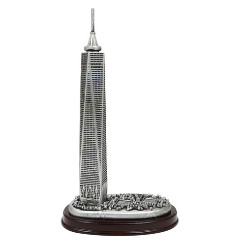 Silver Freedom Tower Model with Wooden Base 8 Inches
